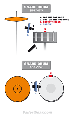 The snare drum is the most difficult to record because you get a lot of bleed from the hi-hat. When you place the mic, make sure the backside of the mic is facing the hi-hat. Make the drummer raise the hi-hat as high as possible and as far as possible from the snare, and use a baffle between the mic and the hi-hat. Buy one or build one yourself (see